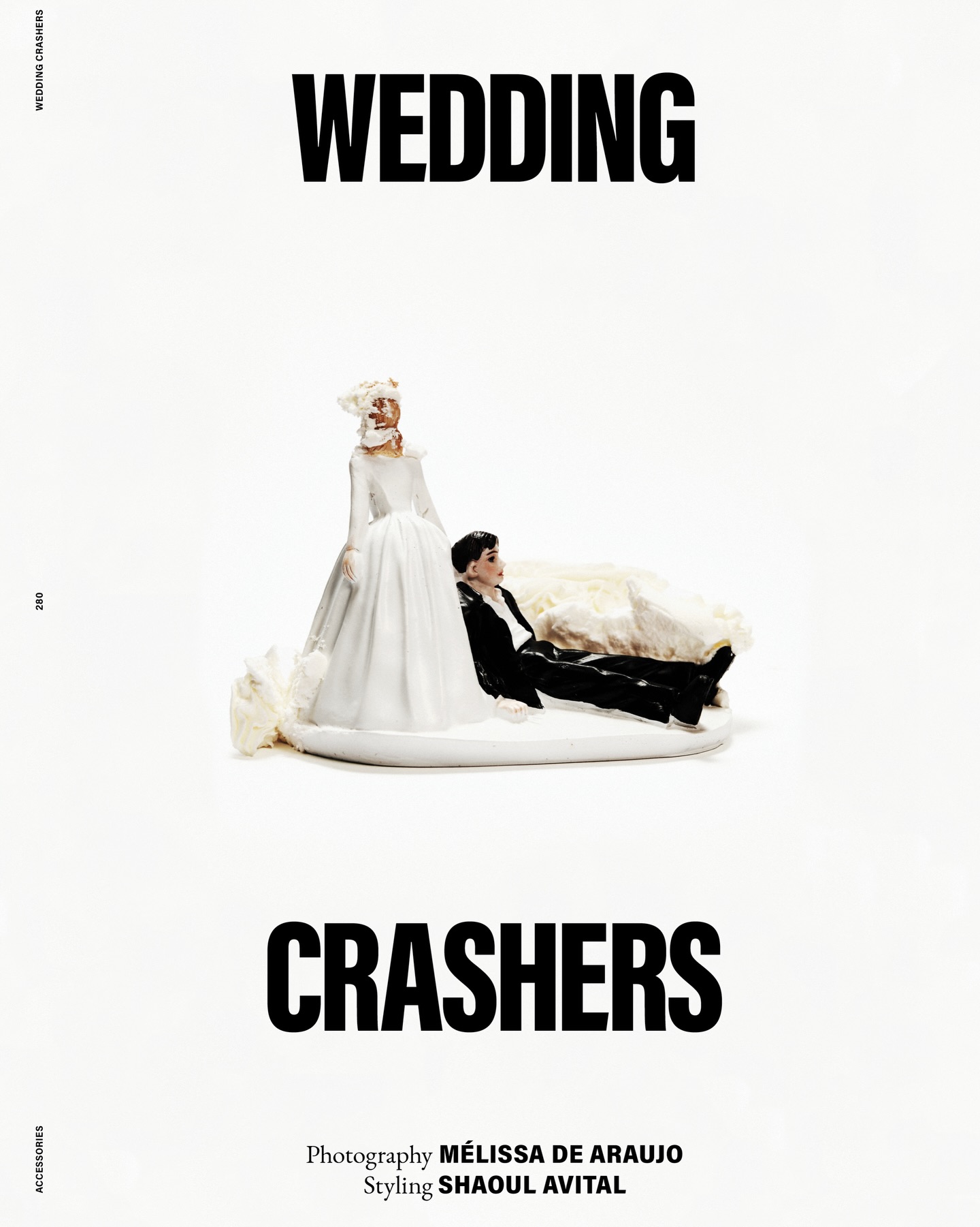 Photographié par Mélissa De Araujo et stylé par Shaoul Avital, l’édito détourne les codes du mariage. Cependant, il reste volontairement simple. L’idée est claire, et l’exécution va à l’essentiel.